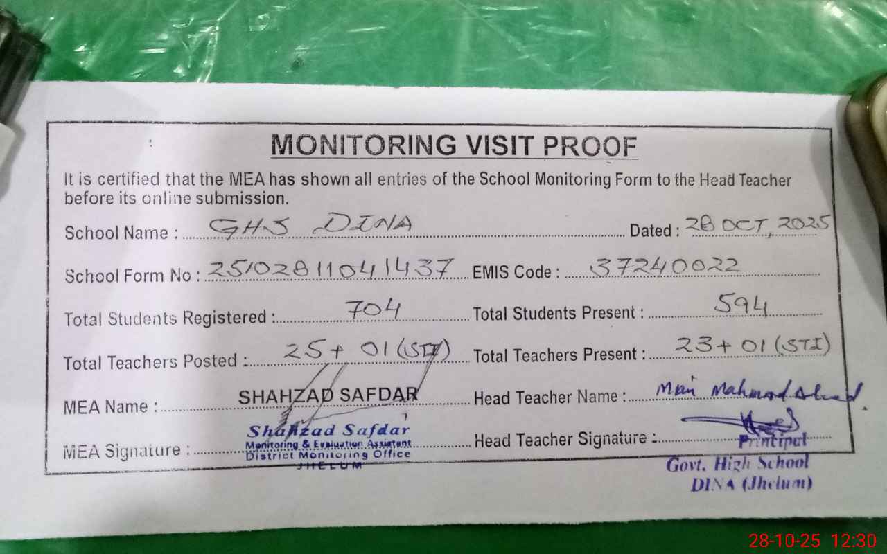 | EMIS Code: 37240022 | Name of School: GHS DINA | |||