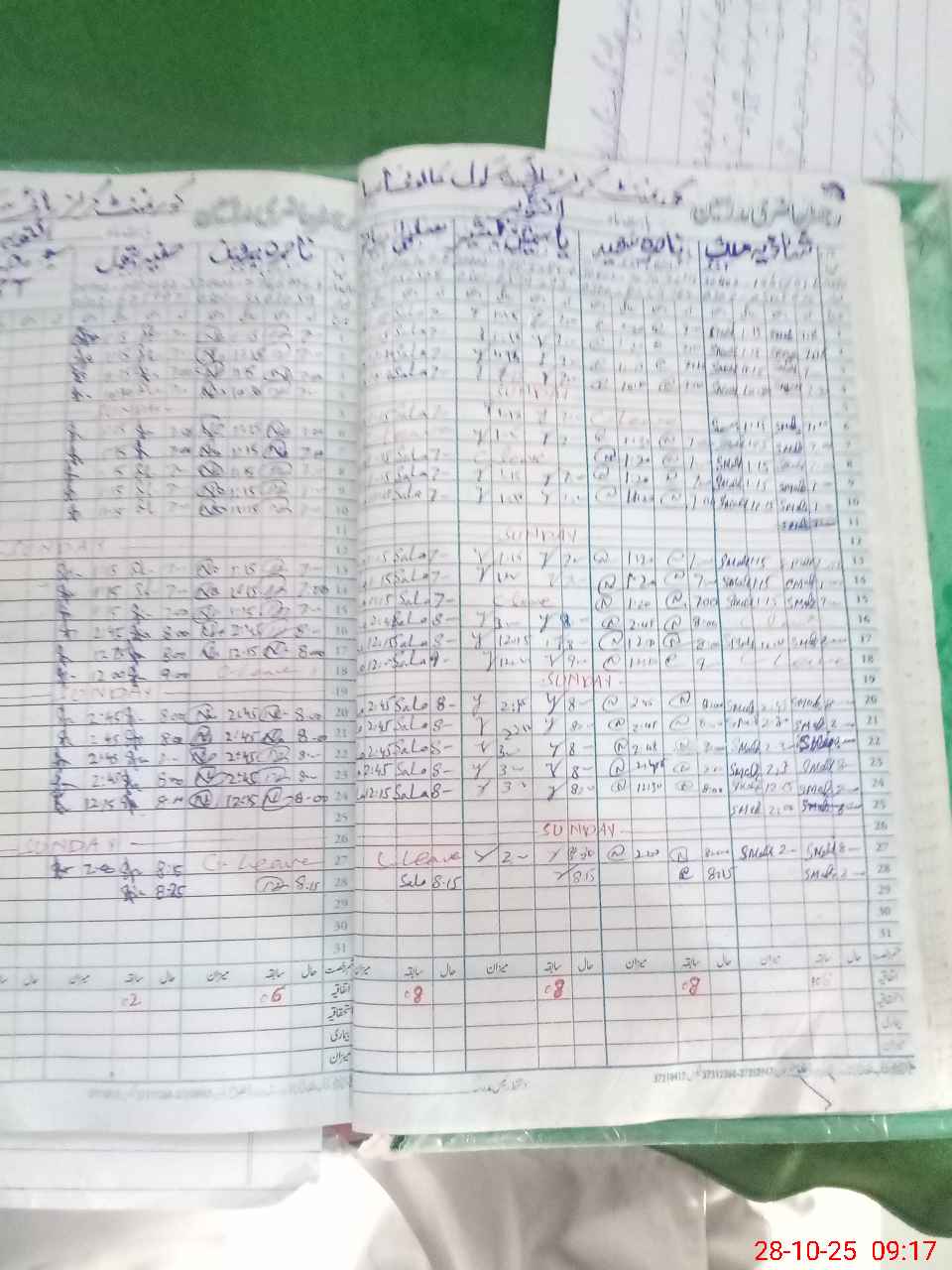 | CNIC | Full Name | Designation | R/C | Absence During Last Calender Month |