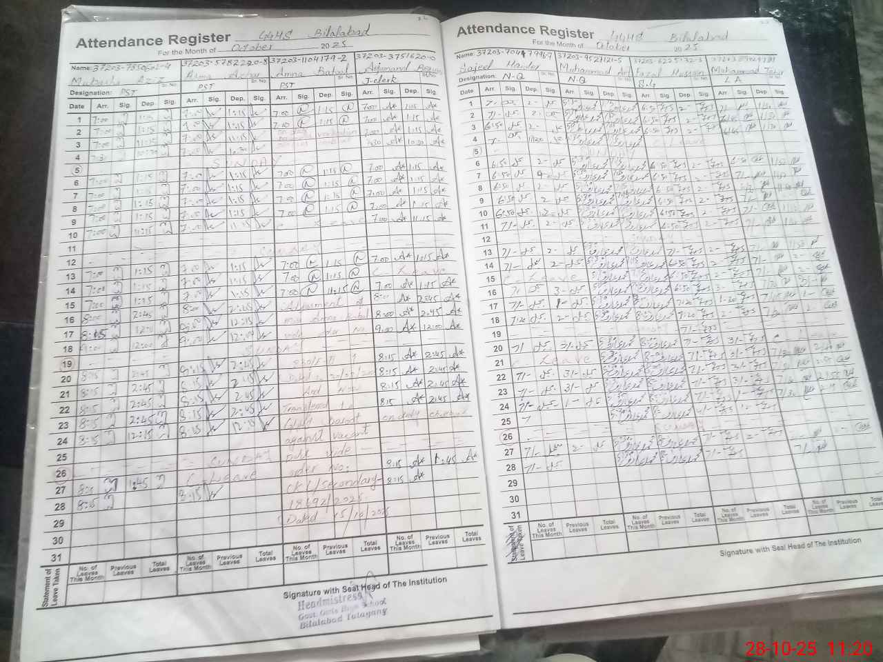 | CNIC | Full Name | Designation | R/C | Absence During Last Calender Month |
