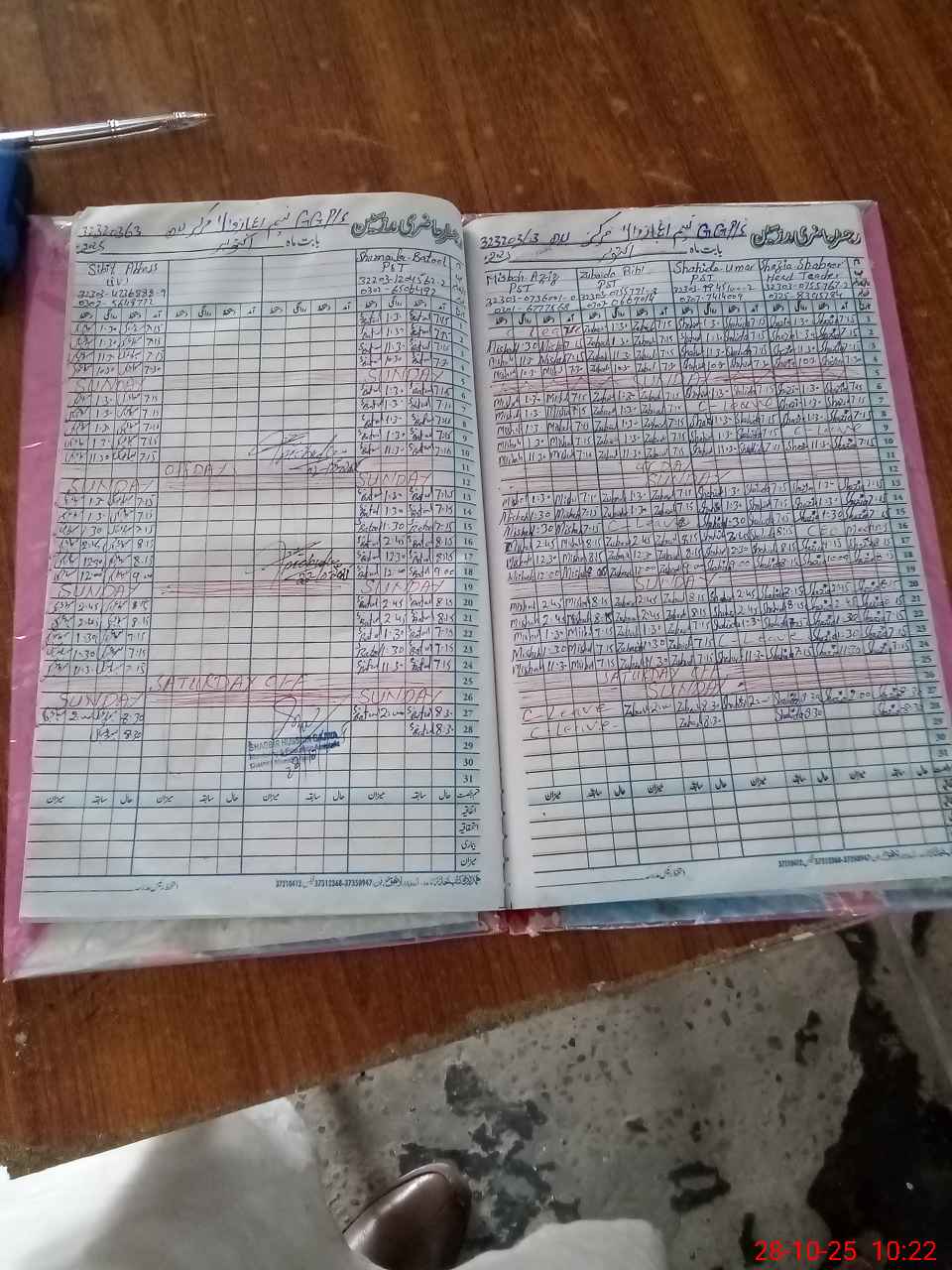 | CNIC | Full Name | Designation | R/C | Absence During Last Calender Month |