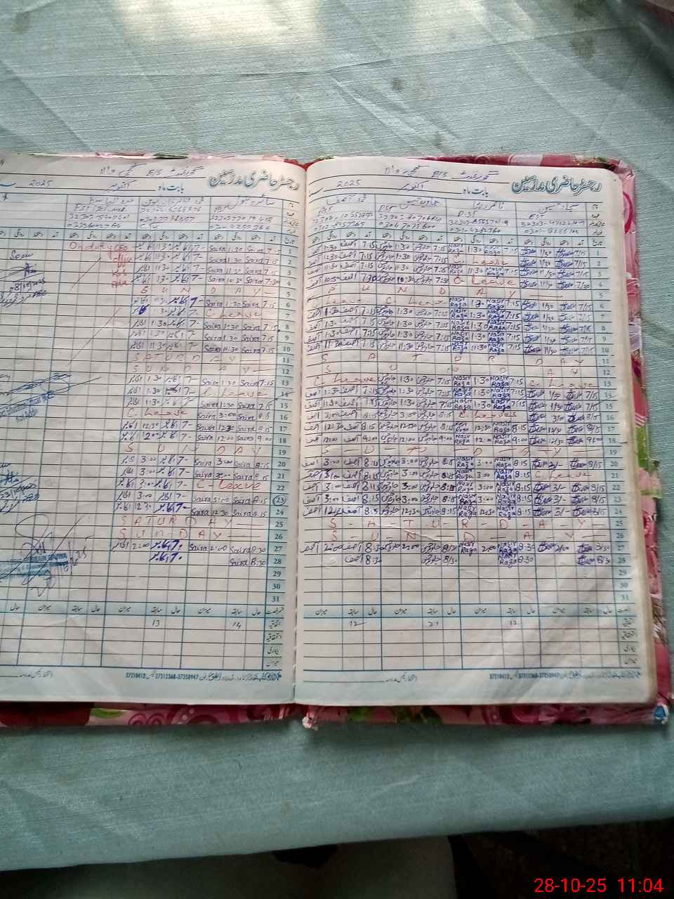 | CNIC | Full Name | Designation | R/C | Absence During Last Calender Month |