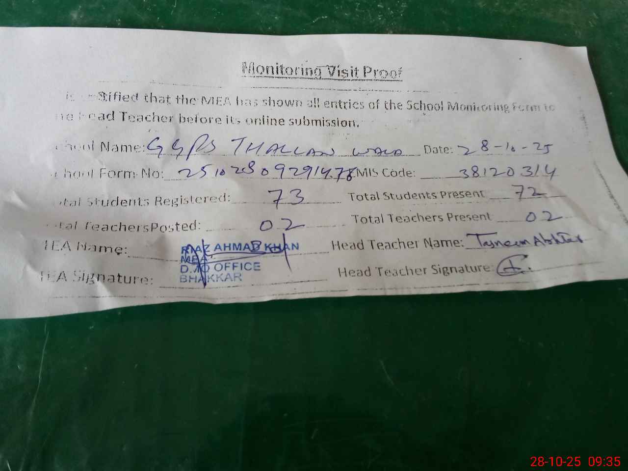 | EMIS Code: 38120314 | Name of School: GGPS THALLAN WALA | |||