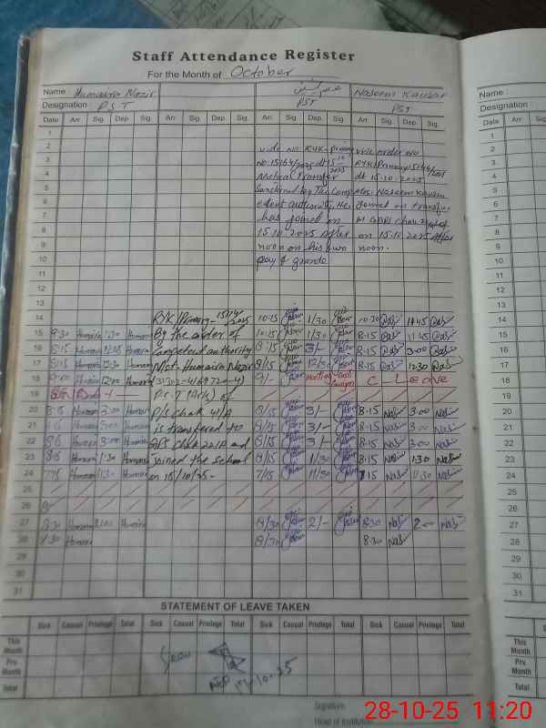 | Name: AS**** RA**** Designation: (School Headmaster's/Headmistress's) PST Phone/Cell Number: 03**** |