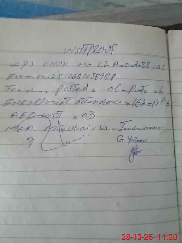 | EMIS Code: 31320107 | Name of School: GPS CHAK 22 A | |||