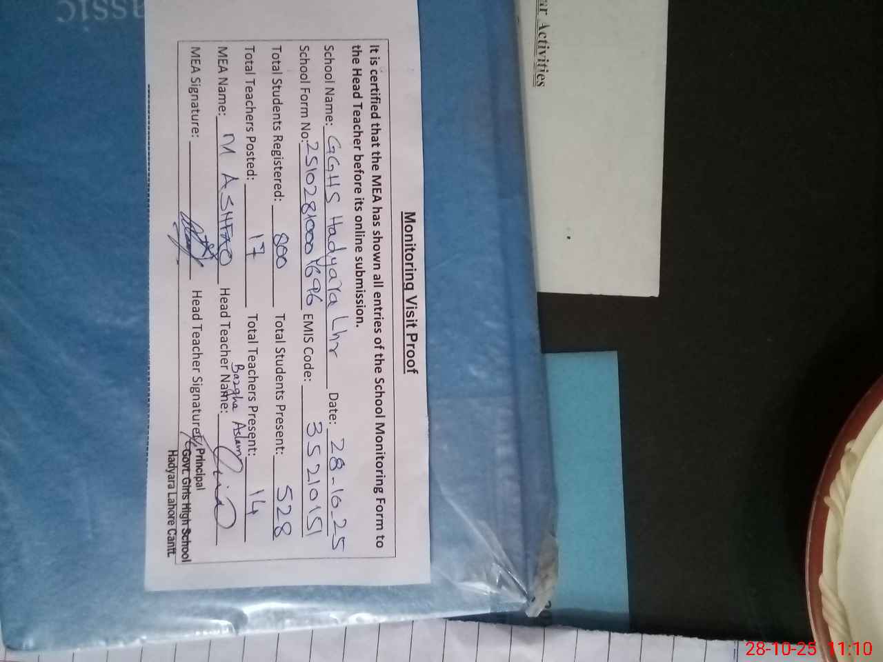 | EMIS Code: 35210151 | Name of School: GGHS HADYARA LAHORE CANTT | |||