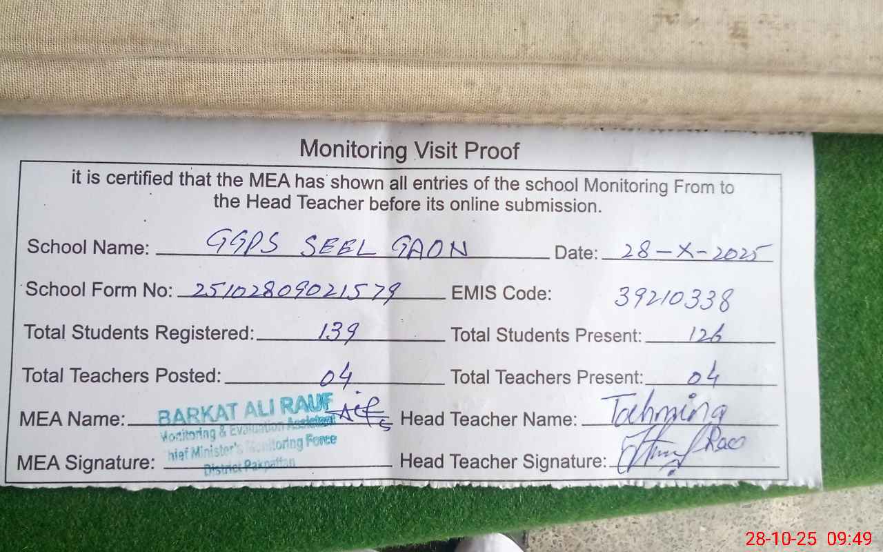 | EMIS Code: 39210338 | Name of School: GGPS SEEL GAON | |||