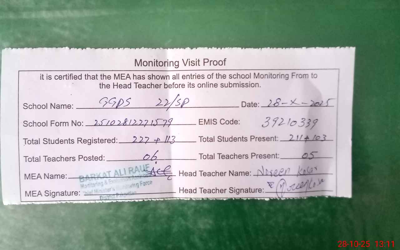 | EMIS Code: 39210339 | Name of School: GGPS 22 SP | |||