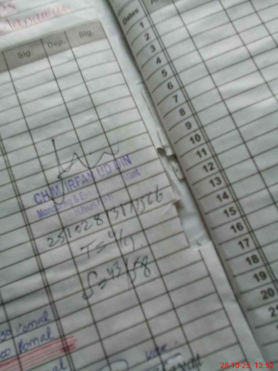 | Monitoring Date: 28-10-2025 | Start Time: 28-10-2025 01:17 PM | End Time: 28-10-2025 01:52 PM | Name of MEA: MU**** IR**** UDDI**** | |