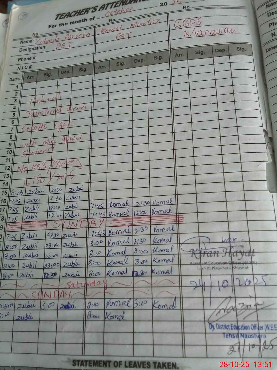 | Name: Um**** Az**** Designation: (School Headmaster's/Headmistress's) PST Phone/Cell Number: 03**** |