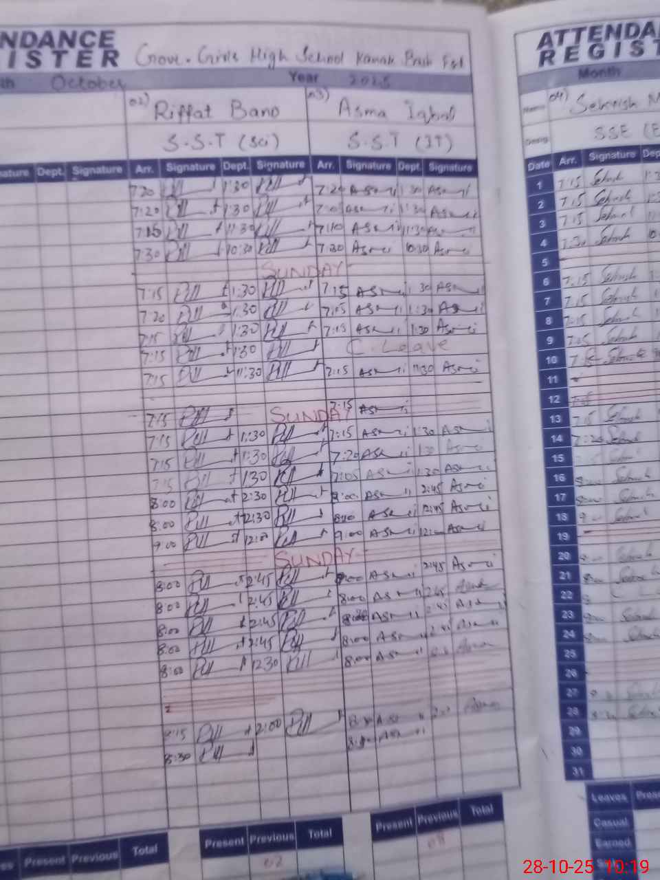 | CNIC | Full Name | Designation | R/C | Absence During Last Calender Month |