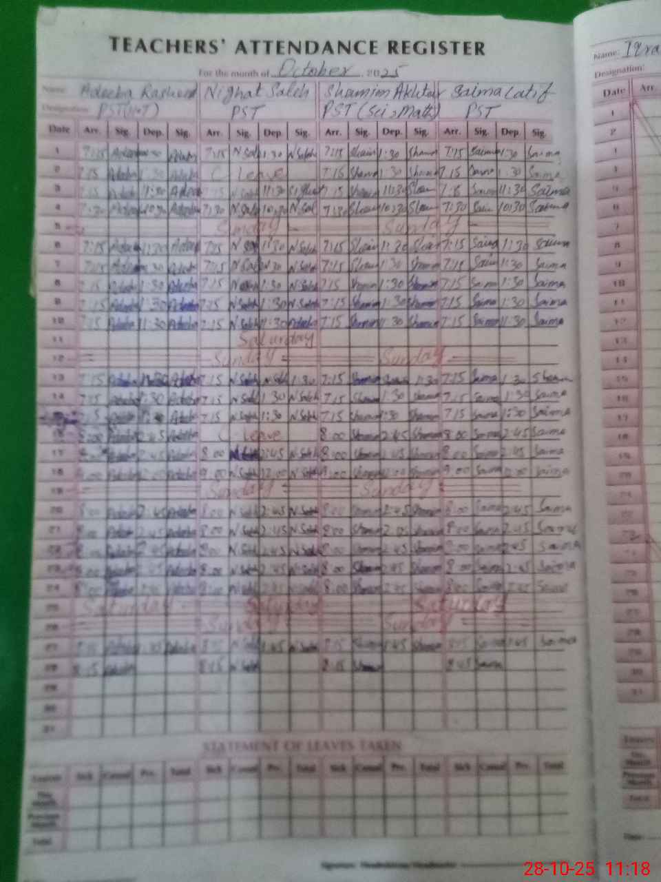 | 33**** | Iq**** Ab**** Sa**** | PST | Regular | 0 | 0 | 0 | 0 | 0 | 0 | 0 | 0 | 0 | Maternity |