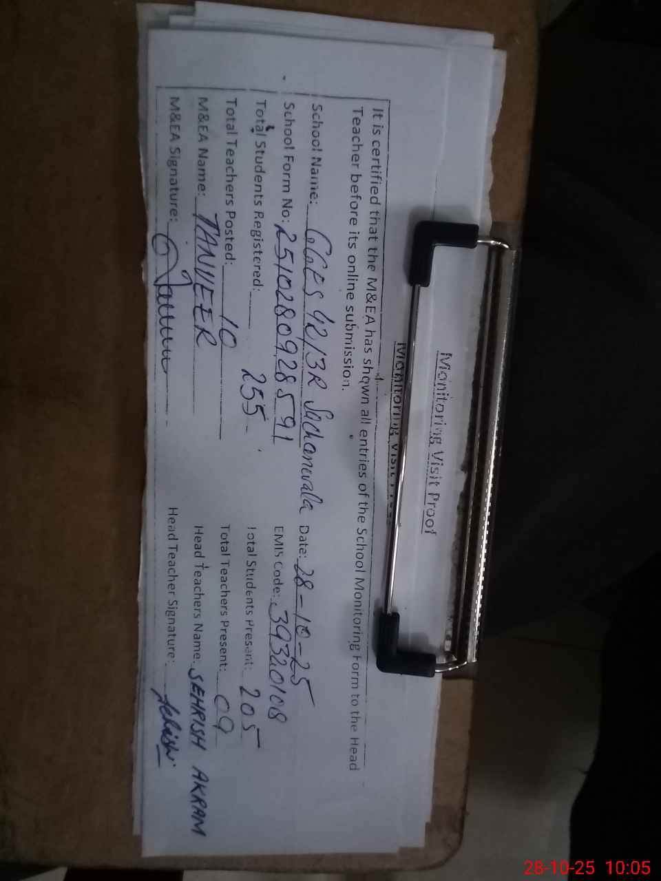 | Attendance Register | Head Teacher | MEA with School | Visit Proof |