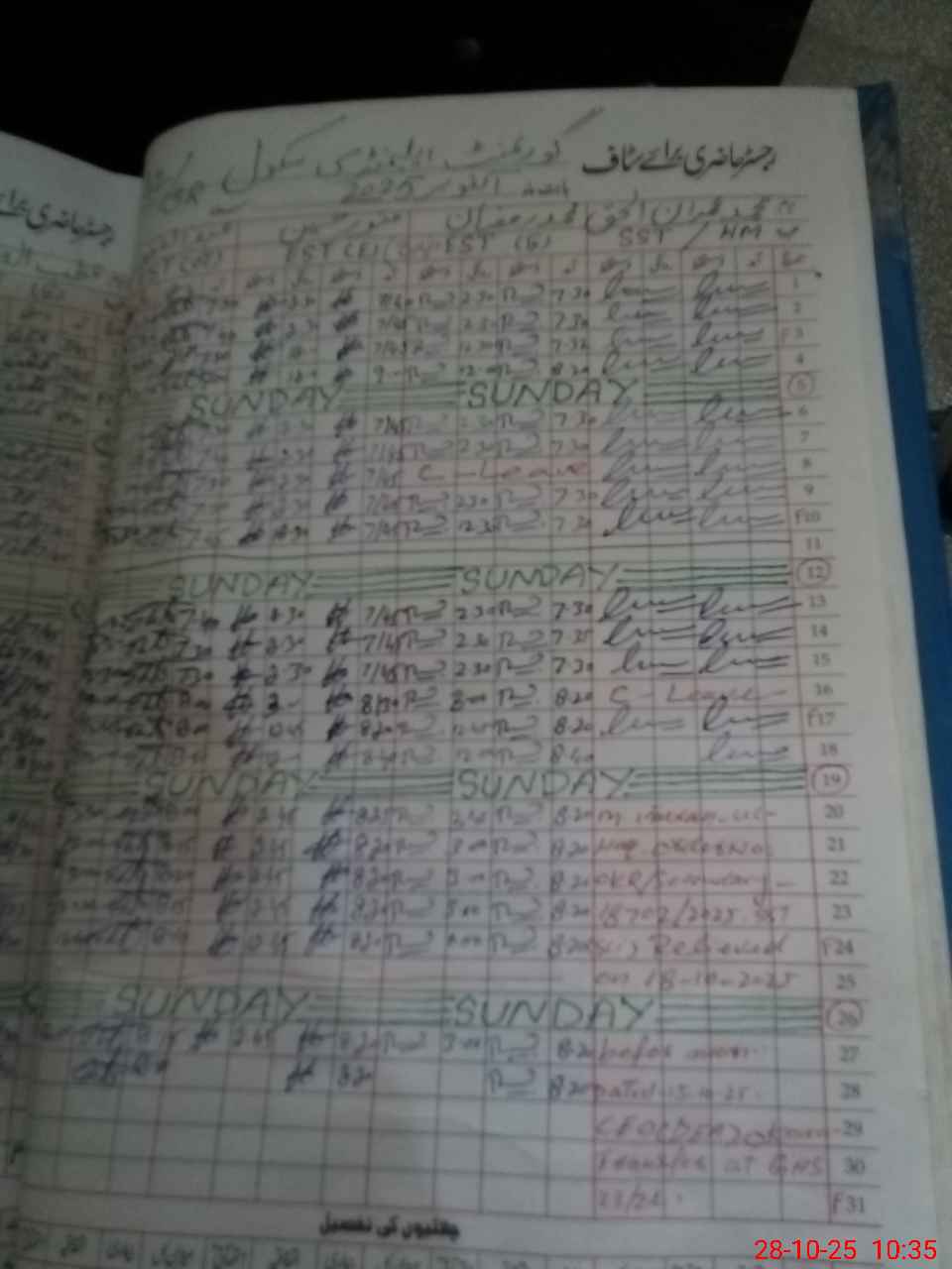 | 35**** | Ab**** Ja**** Na**** | EST | Regular | 0 | 0 | 0 | 0 | 0 | 0 | 0 | 0 | 0 | Exam Duty |