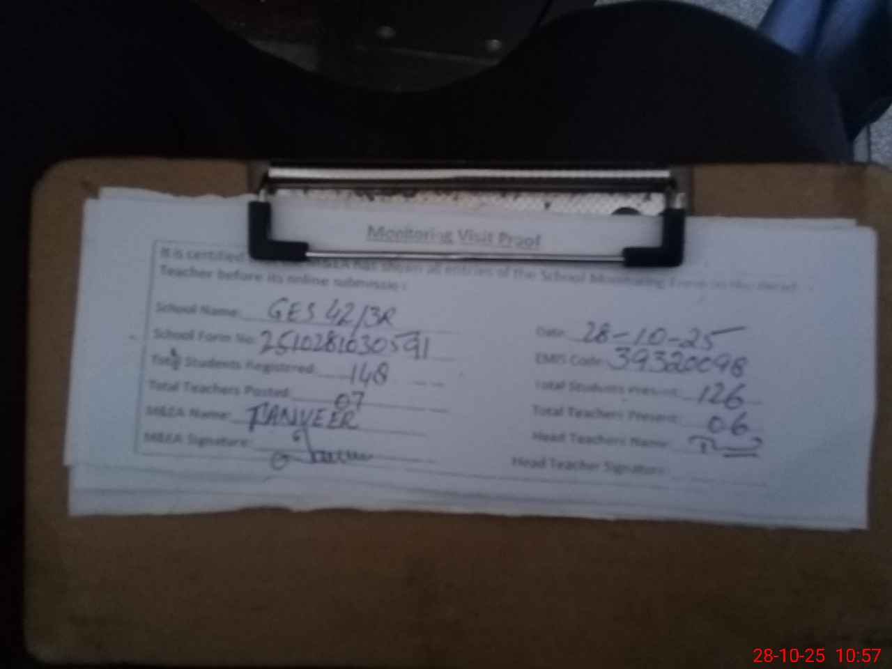 | Attendance Register | Head Teacher | MEA with School | Visit Proof |