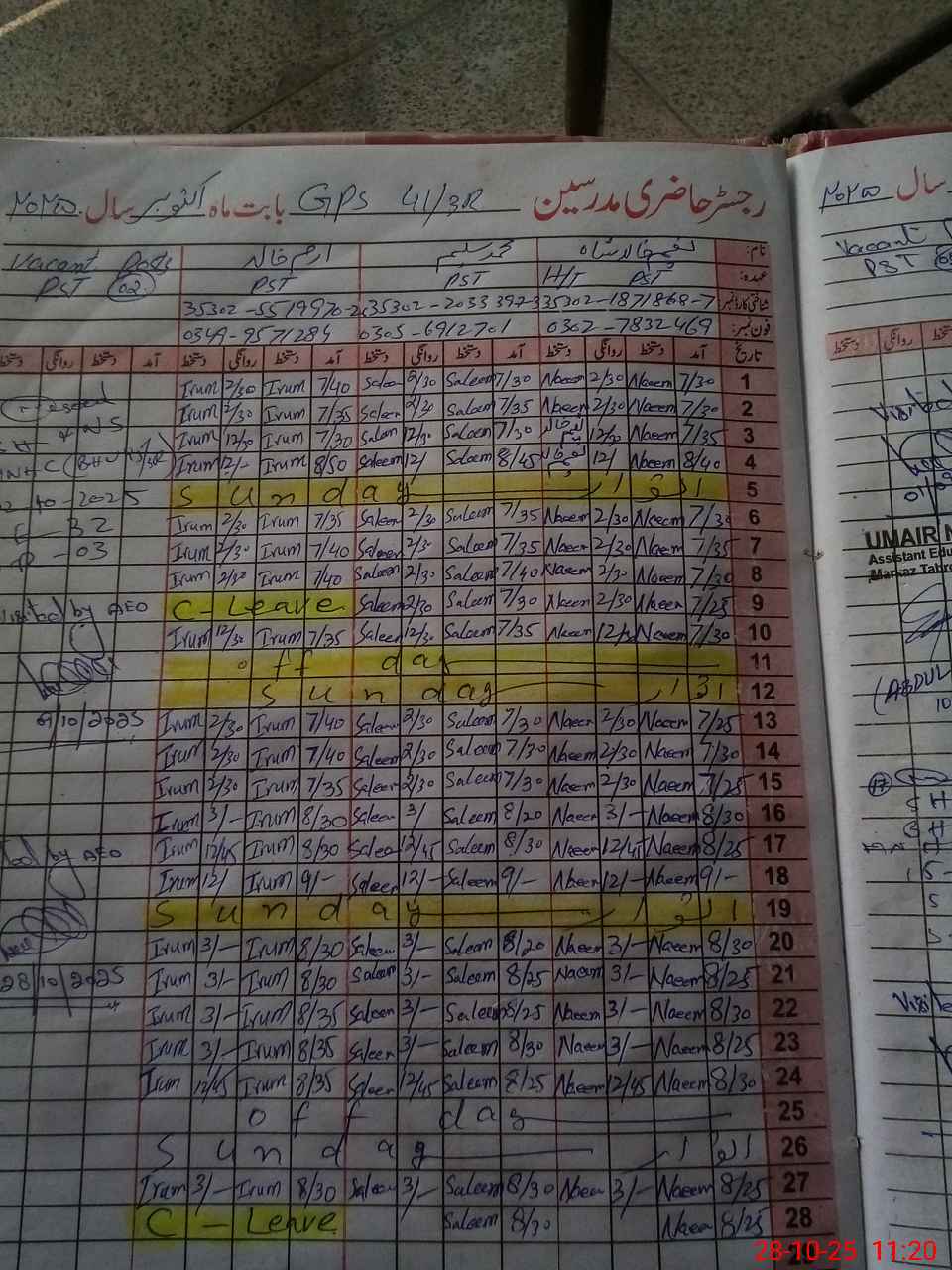 | 35**** | Ir**** Kh**** | PST | Regular | 2 | 0 | 0 | 0 | 0 | 0 | 0 | 0 | 2 | Casual |