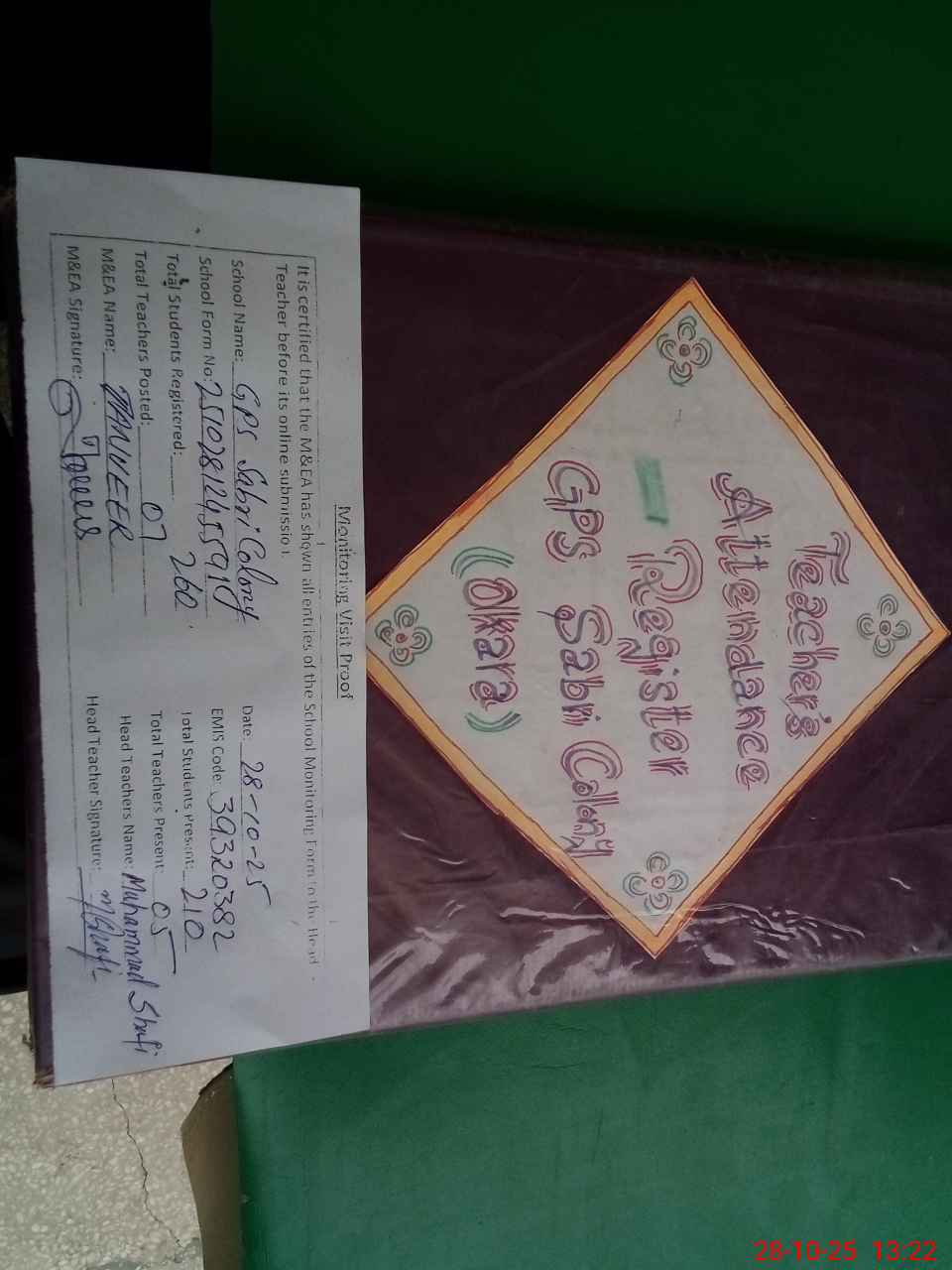 | EMIS Code: 39320382 | Name of School: GPS SABRI COLONY | |||