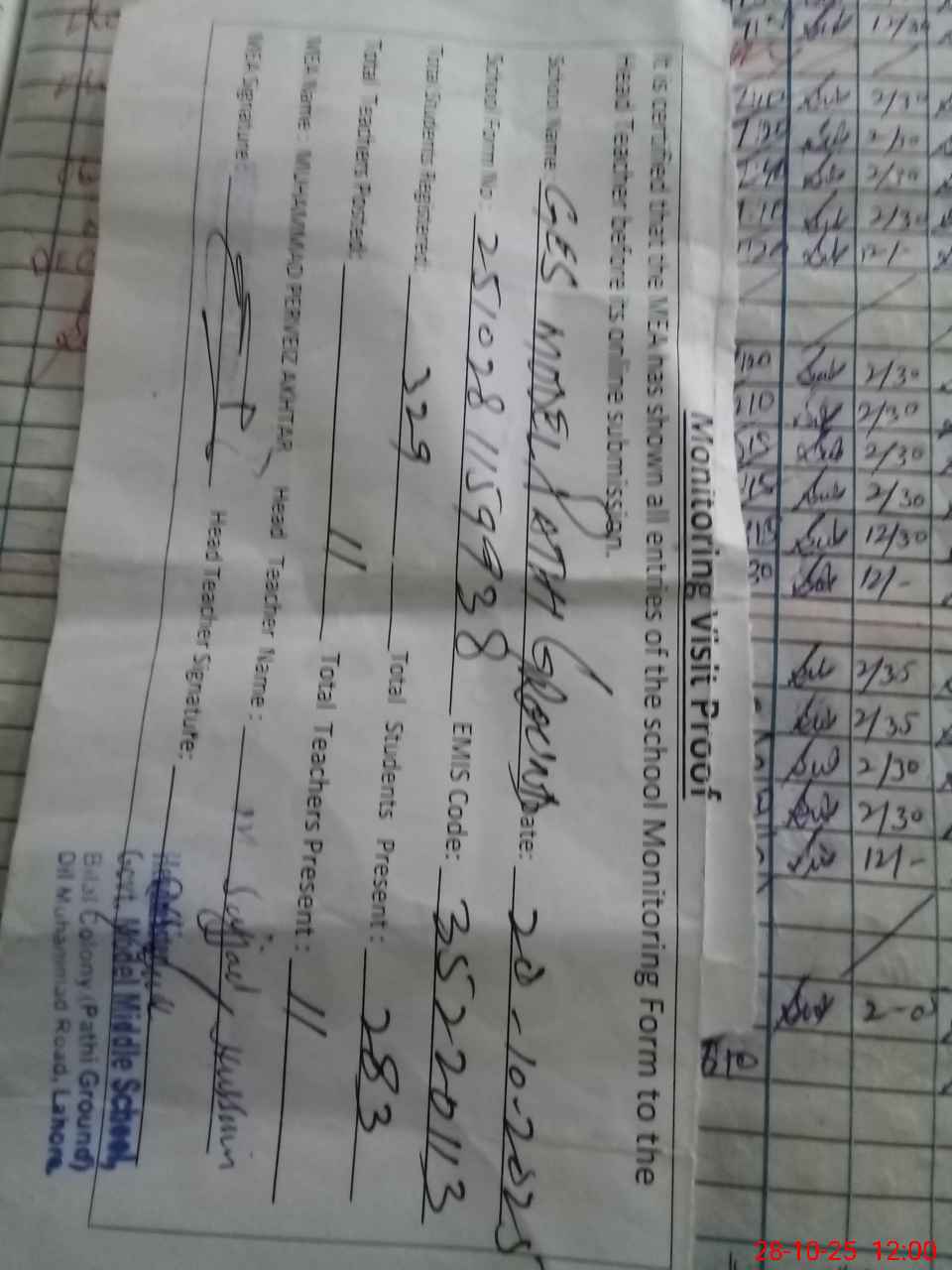 | Certified that this School was Inspected by the Undersigned MEA/DMO Today and the Information Stated Above is as Per Record. | |||||