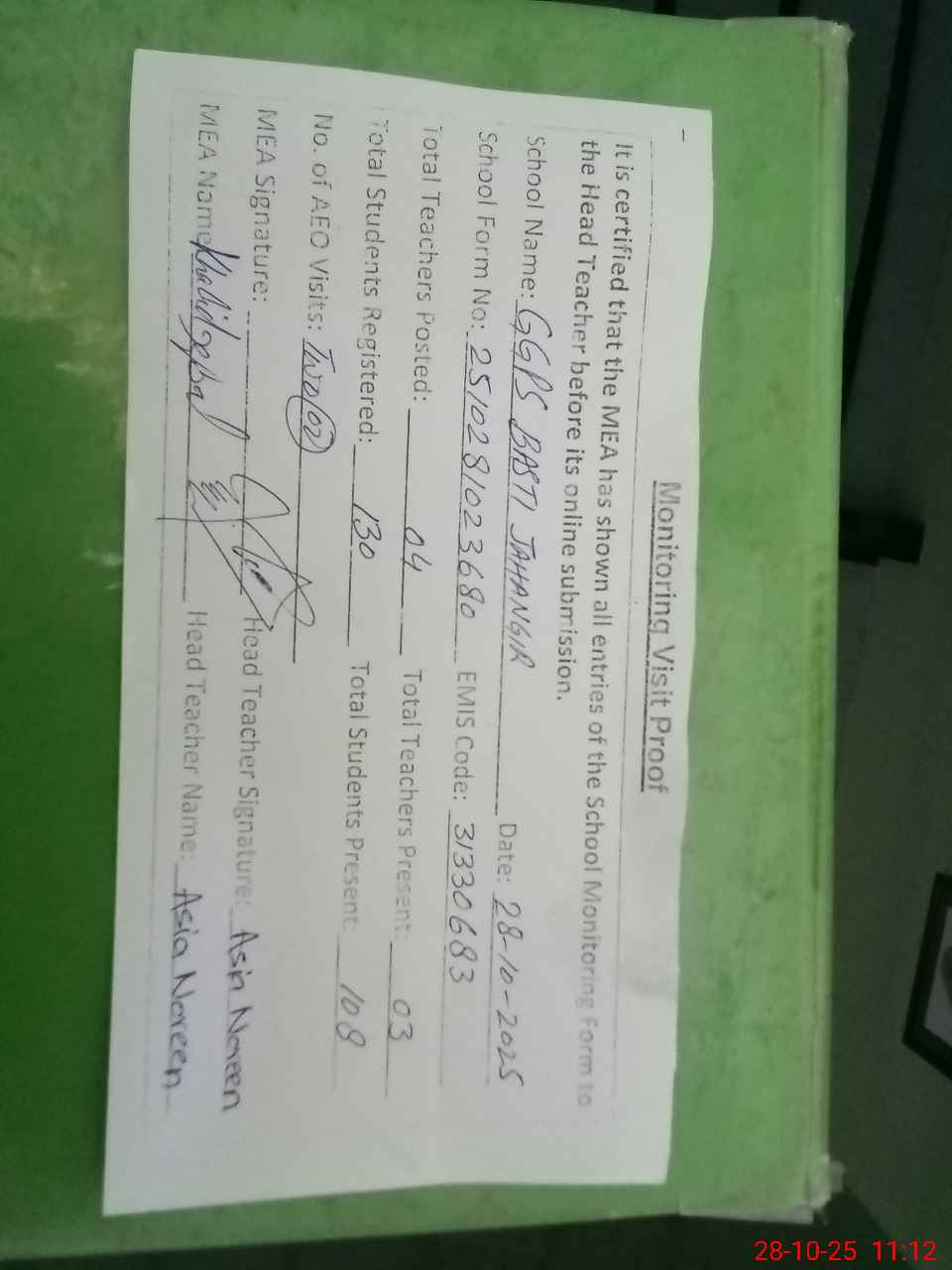| EMIS Code: 31330683 | Name of School: GGPS BASTI JAHANGIR | |||