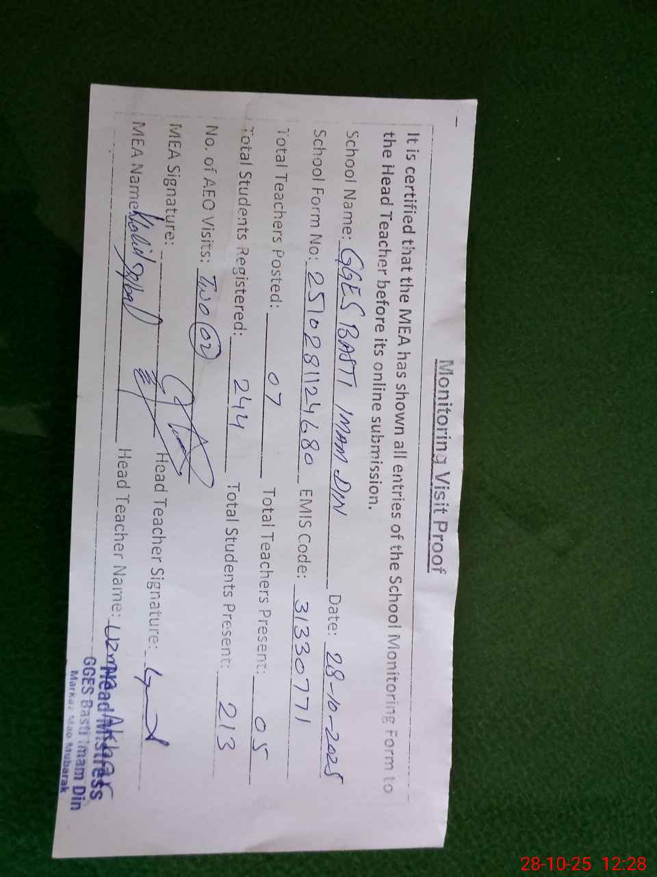 | EMIS Code: 31330771 | Name of School: GGES BASTI IMAM DIN | |||