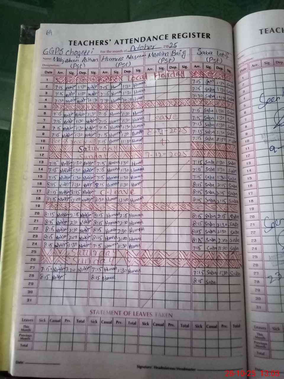 | Leave | Duty | Absent | Maternity | Medical | Ex- Pak |