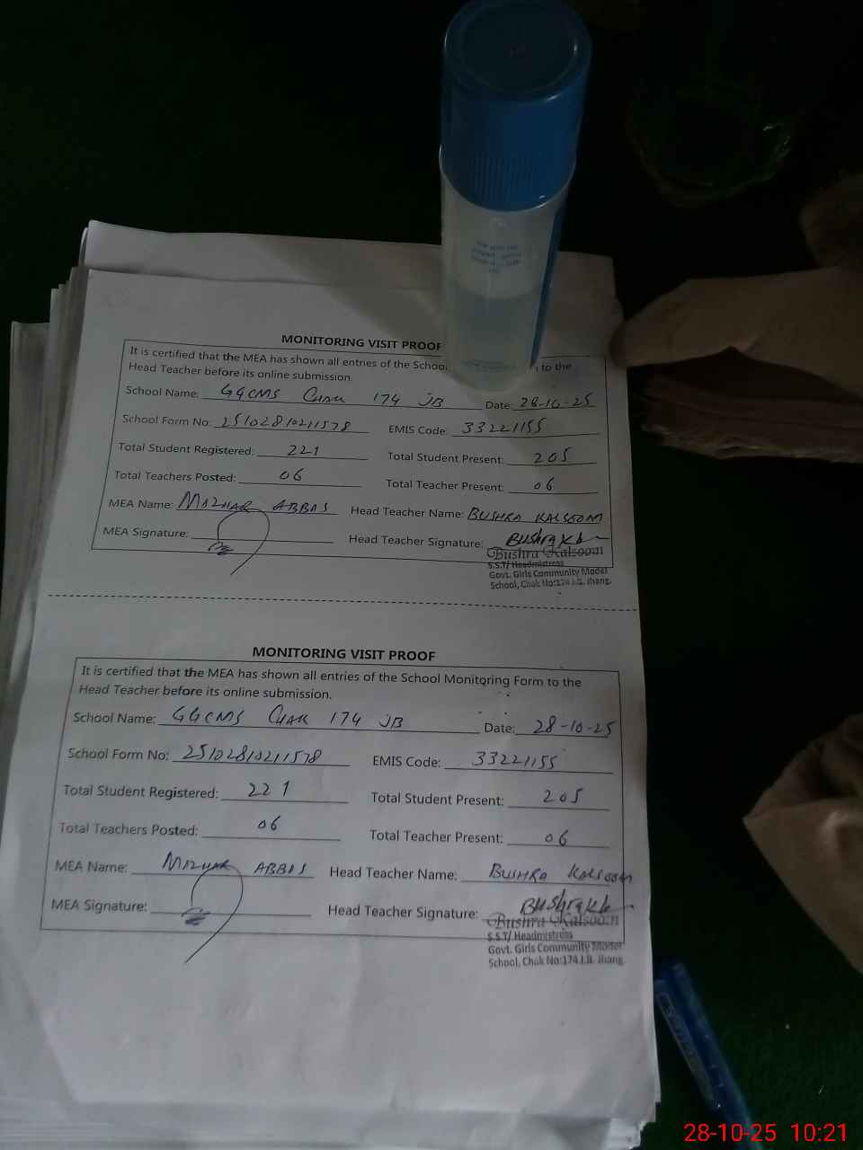 | EMIS Code: 33221155 | Name of School: GGCMS CHAK NO. 174 JB | |||