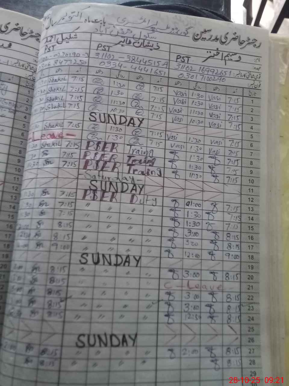| CNIC | Full Name | Designation | R/C | Absence During Last Calender Month |