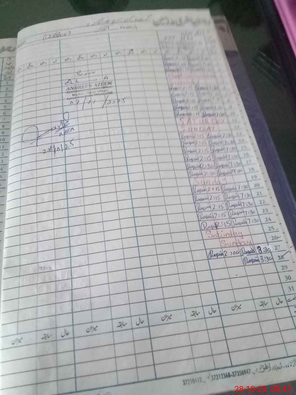 | Name: Ra**** Pe**** Designation: (School Headmaster's/Headmistress's) EST Phone/Cell Number: 03**** |