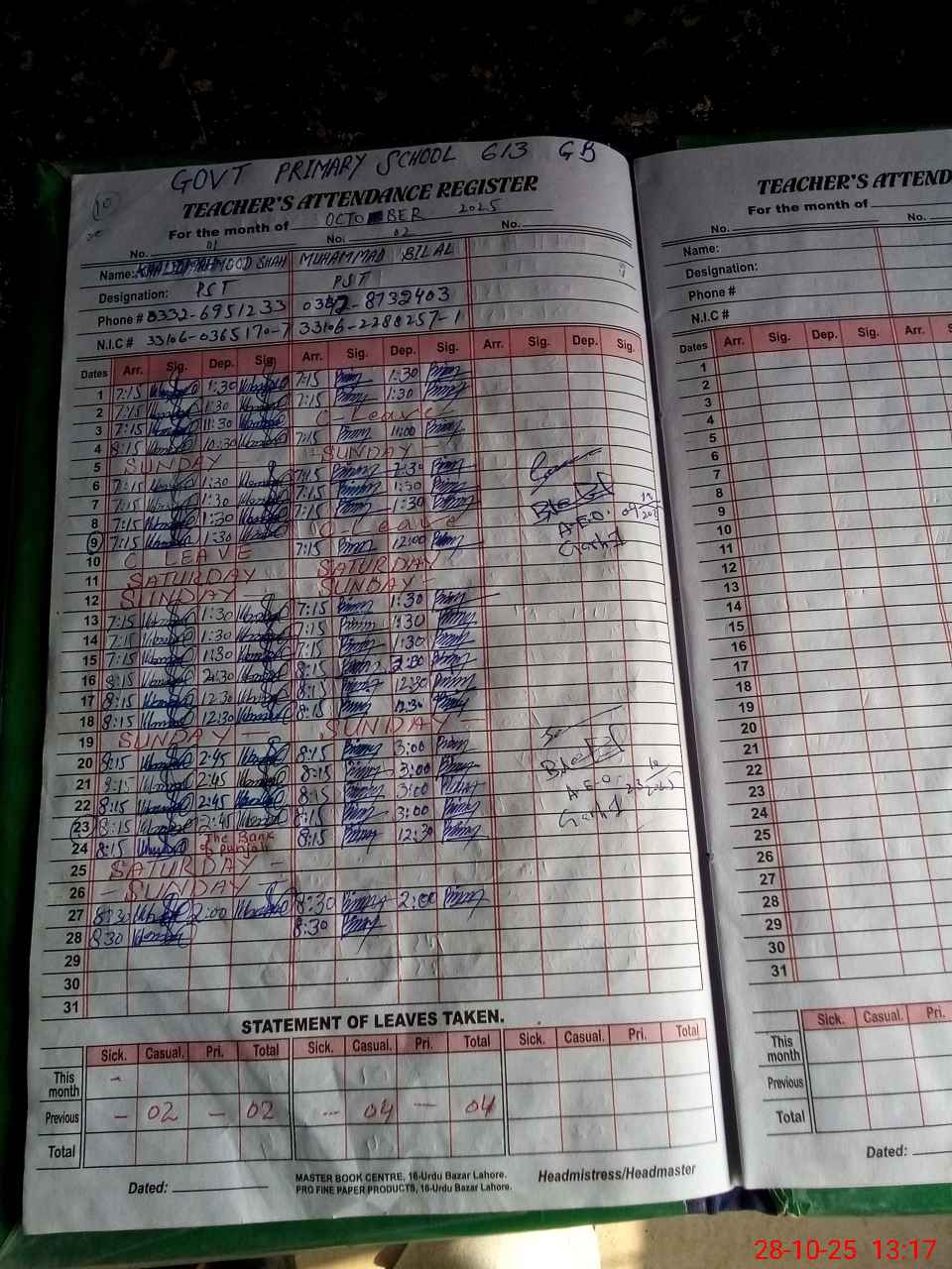| Name: KH**** MA**** SH**** Designation: (School Headmaster's/Headmistress's) PST Phone/Cell Number: 03**** |