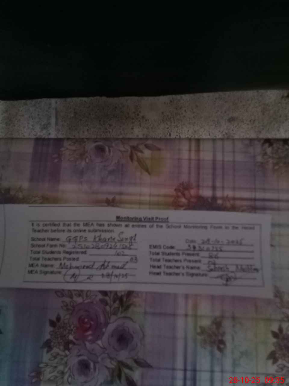 | Certified that this School was Inspected by the Undersigned MEA/DMO Today and the Information Stated Above is as Per Record. | |||||