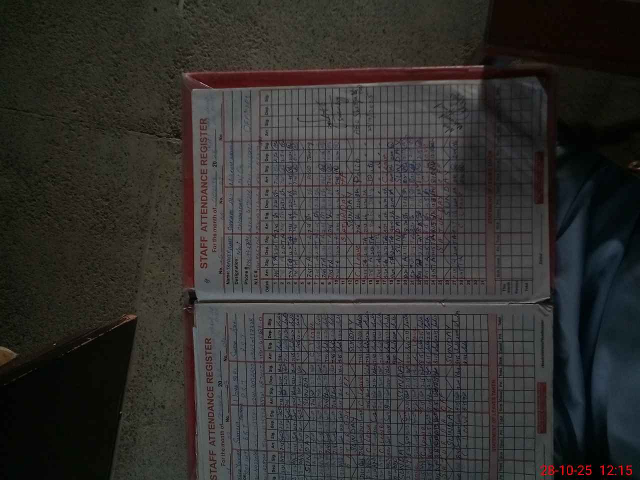 | CNIC | Full Name | Designation | R/C | Absence During Last Calender Month |