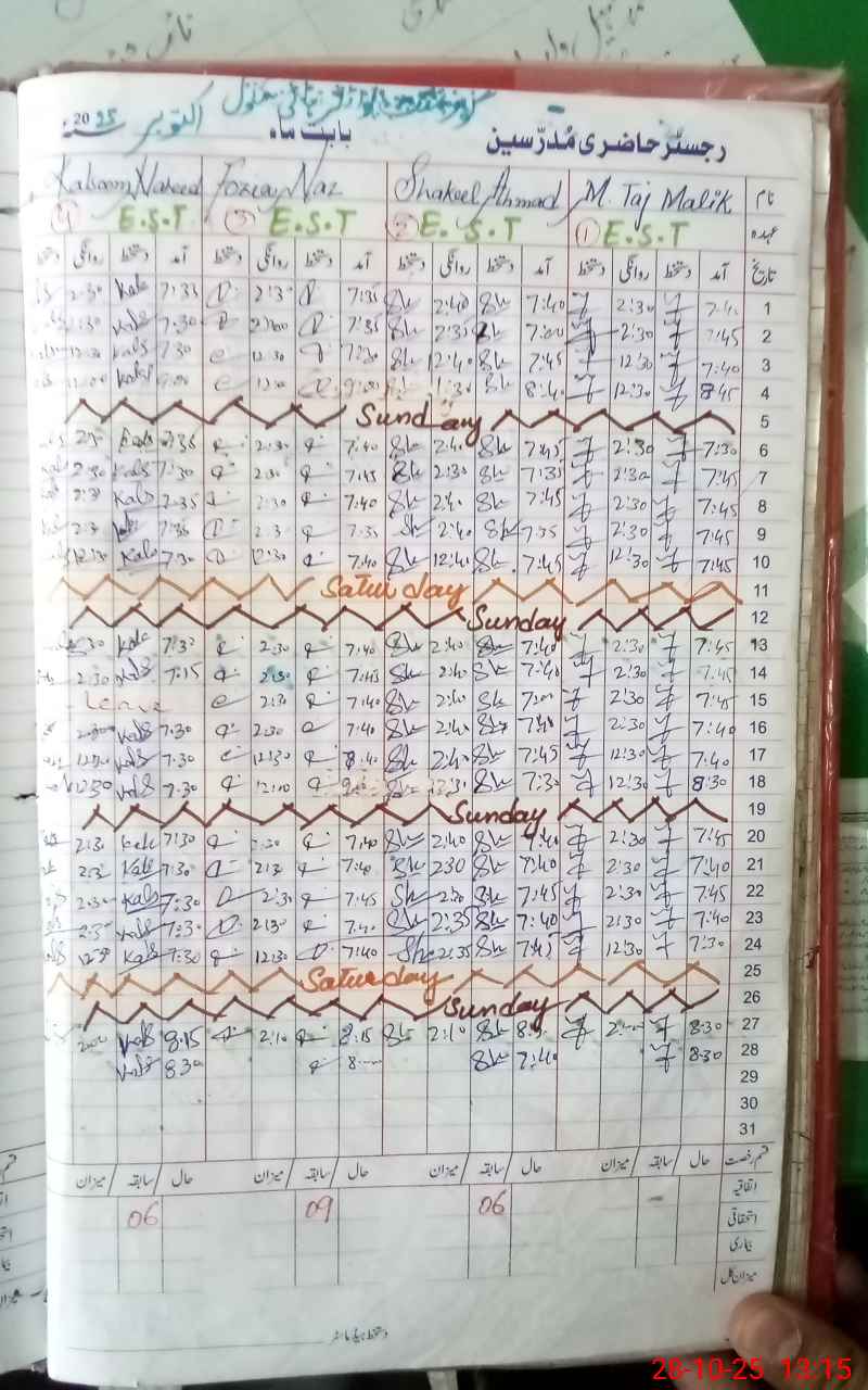 | Remarks (Use Separate Page if Required): This is newly upgrade high school in June 2025 and covers an area of approximately 11 canals Sanctioned non teaching staff is 04 No non teaching staff appointed here Toilets and wash points and overall cleanliness is poor EST Muhammad Taj of this school has given the responsibility of head teacher According to acting head he is paying the sweeper from his own pocket as NSB available is 61 rupees As school has no head teacher appointed so current staff is not collecting FTF fund due to account issues According to movement register teachers Imran pst Waseem est and Naveed est has gone to PMIU for collection of science kit and lab equipment 12 newly constructed class in 2020 yet not handed over to school 03 toilets are non functional out of 11 According to the head they are attempting to delete students of eight class those have left the school but system not accepting it And their strength is about 200 | |||||