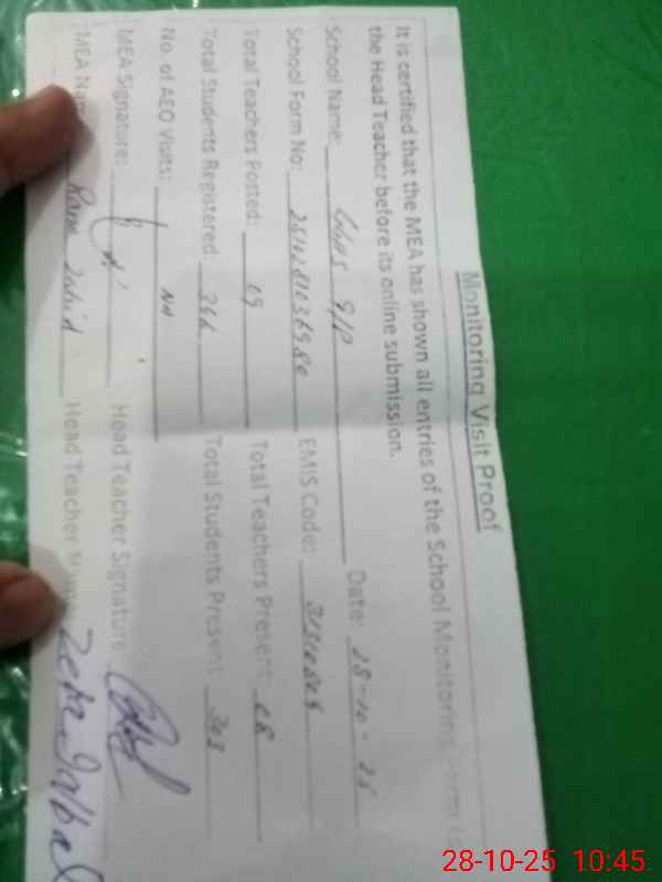 | EMIS Code: 31310804 | Name of School: GGHS CHAK NO. 9/P | |||