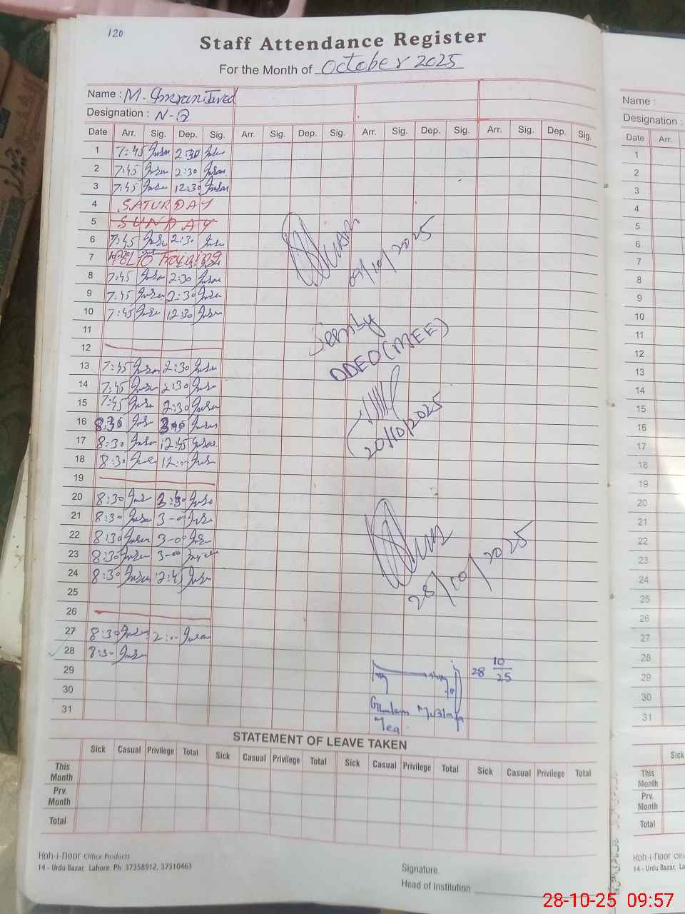| 35**** | Mu**** Na**** Ma**** | PST | Regular | 0 | 0 | 0 | 0 | 0 | 0 | 0 | 0 | 0 | Casual |