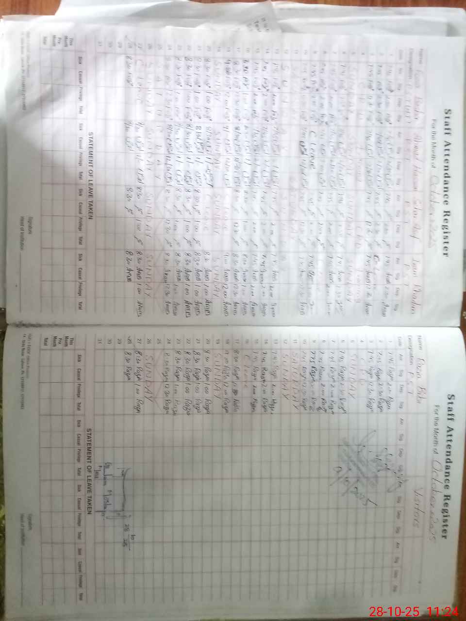 | CNIC | Full Name | Designation | R/C | Absence During Last Calender Month |