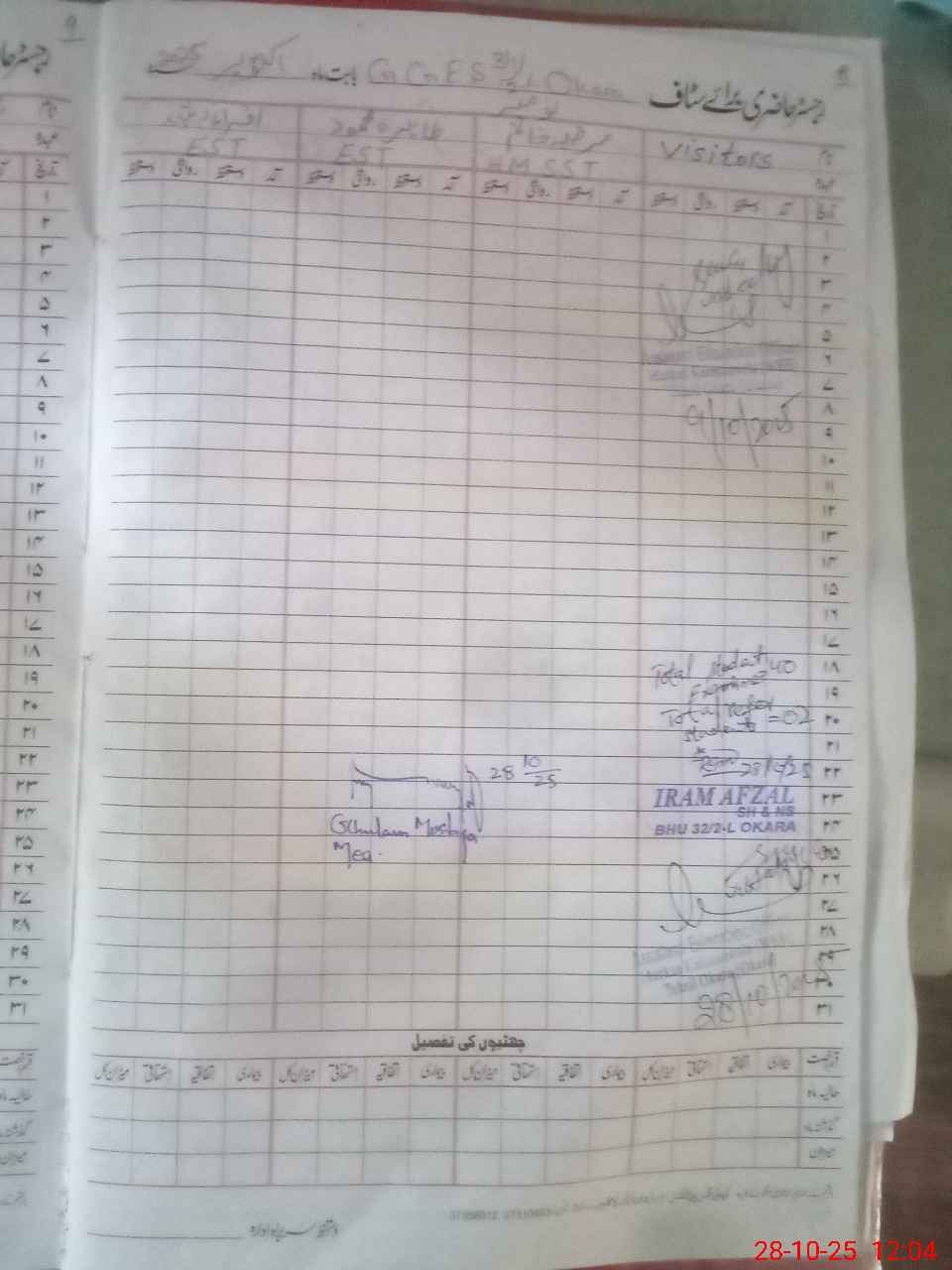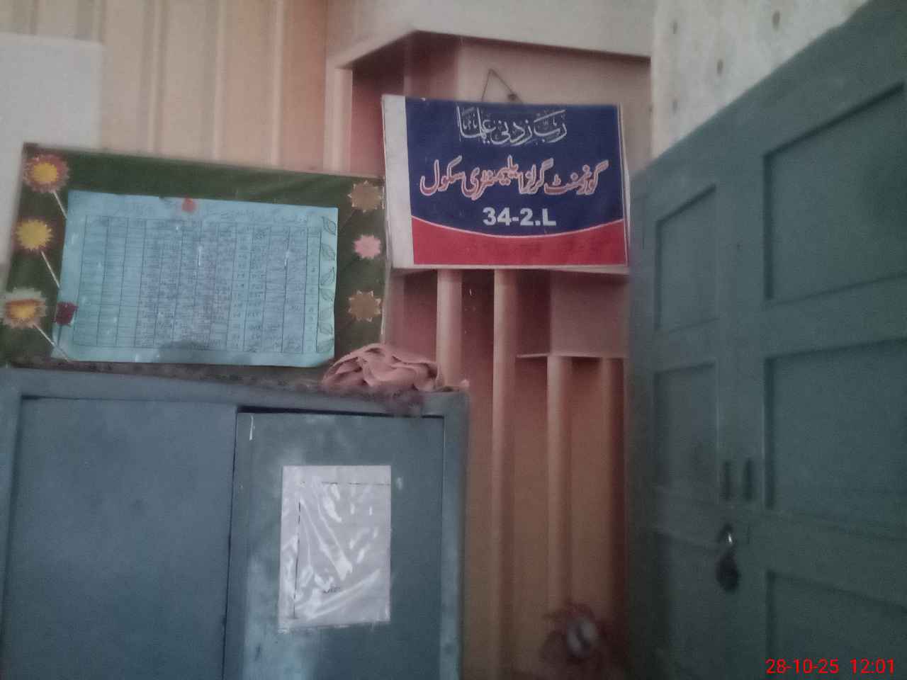 | Total no. of Classrooms: 8 No. of Classrooms Used for Teaching: 6 No. of Classrooms Storing Old Furniture, FTBs, etc: 0Comments if Any: Nominal roll for online attendance found contrary to current available students records Acting head teacher told that all enrolled students provided with free text books accordingly |