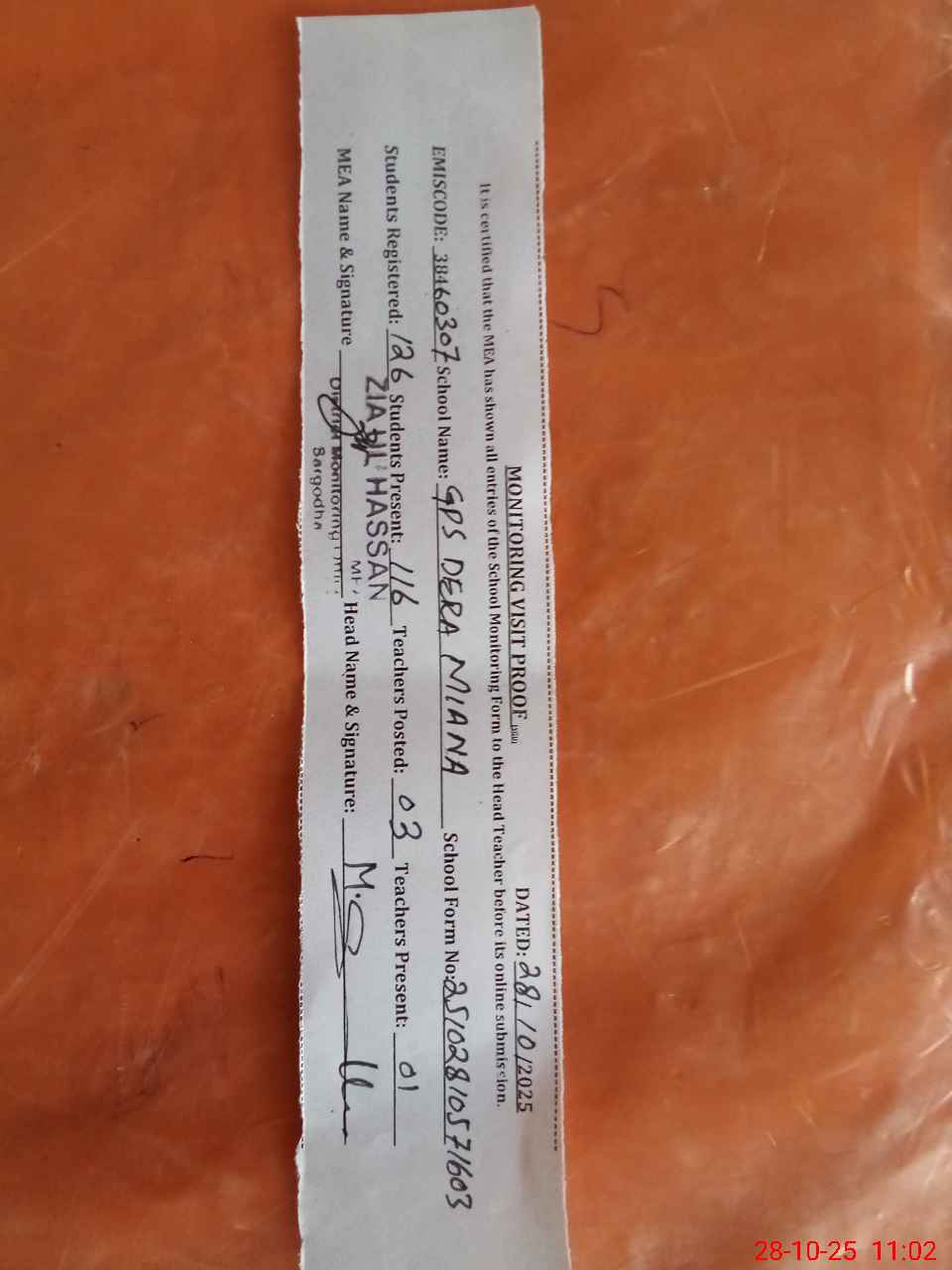 | EMIS Code: 38460307 | Name of School: GPS DERA MIANA | |||