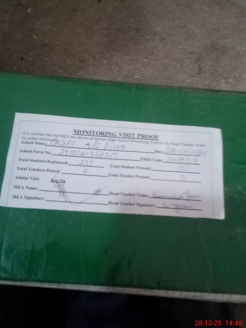| EMIS Code: 34110319 | Name of School: GGPS ALI PURA | |||