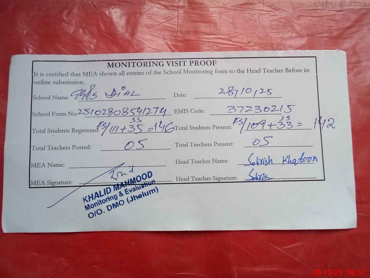 | Certified that this School was Inspected by the Undersigned MEA/DMO Today and the Information Stated Above is as Per Record. | |||||