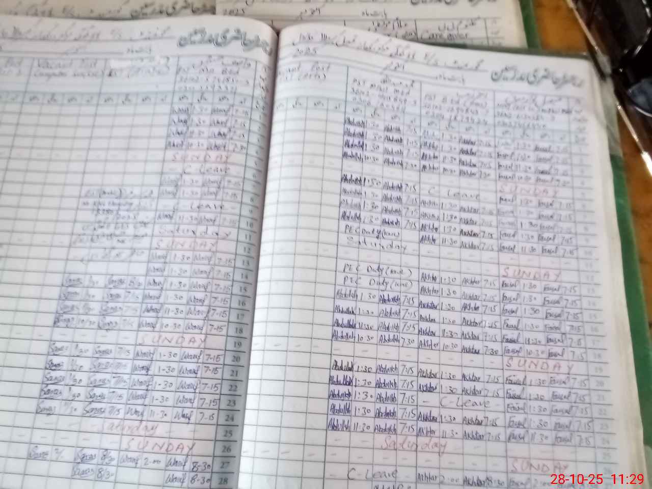 | Leave | Duty | Absent | Maternity | Medical | Ex- Pak |