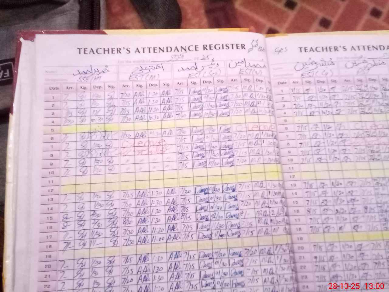 | Leave | Duty | Absent | Maternity | Medical | Ex- Pak |