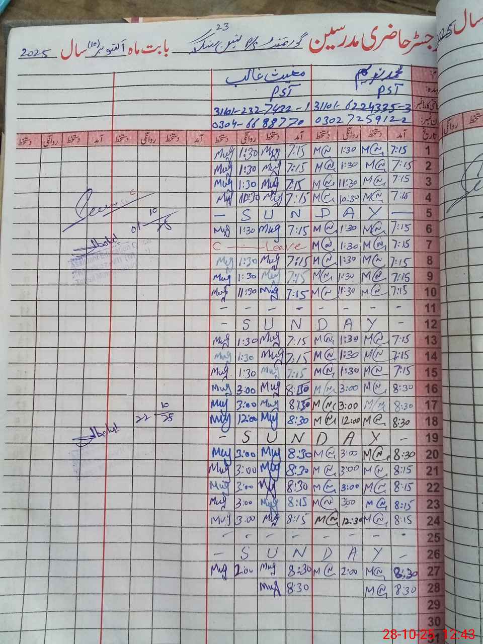 | Name: MU**** NA**** Designation: (School Headmaster's/Headmistress's) PST Phone/Cell Number: 03**** |