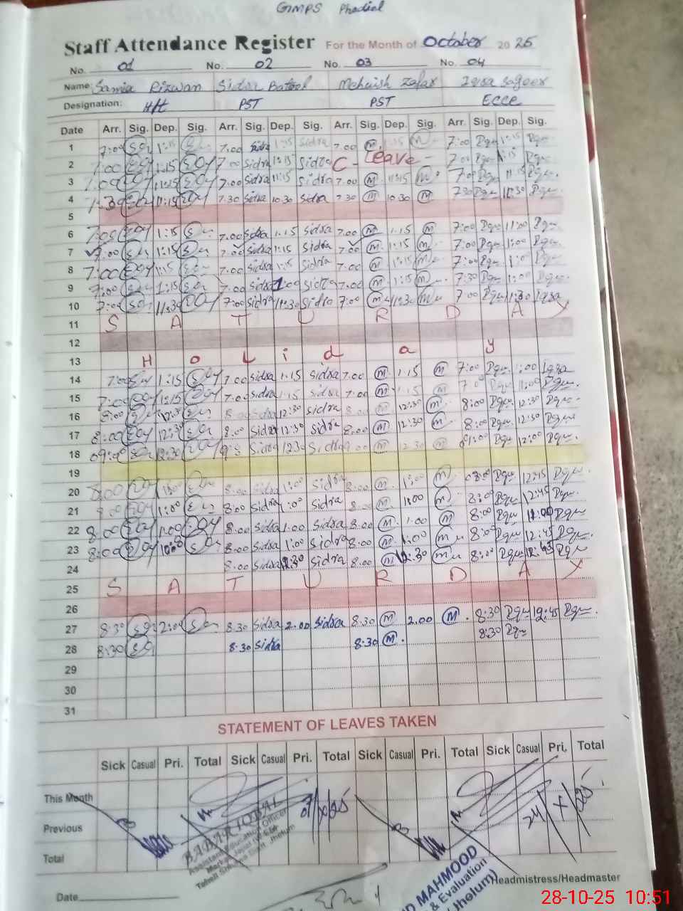 | Name: SA**** RI**** Designation: (School Headmaster's/Headmistress's) PTC/JV Phone/Cell Number: 03**** |