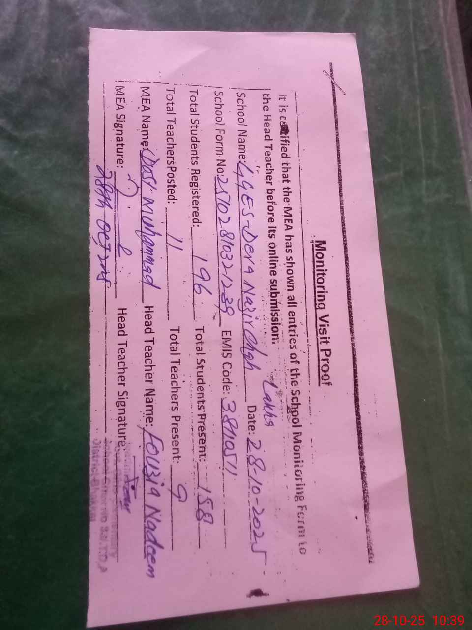| EMIS Code: 38110511 | Name of School: GGES DERA NAZIR CHAH LAKH | |||