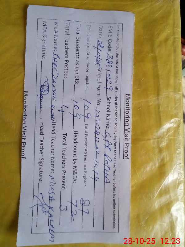 | Attendance Register | Head Teacher | MEA with School | Visit Proof |