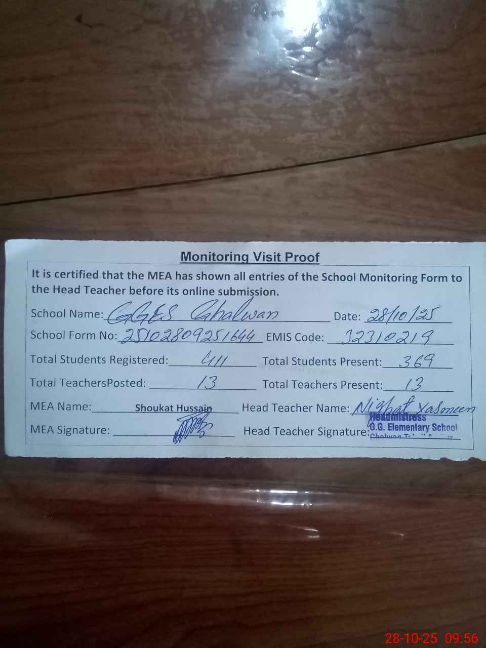 | EMIS Code: 32310219 | Name of School: GGES GHALWAN | |||