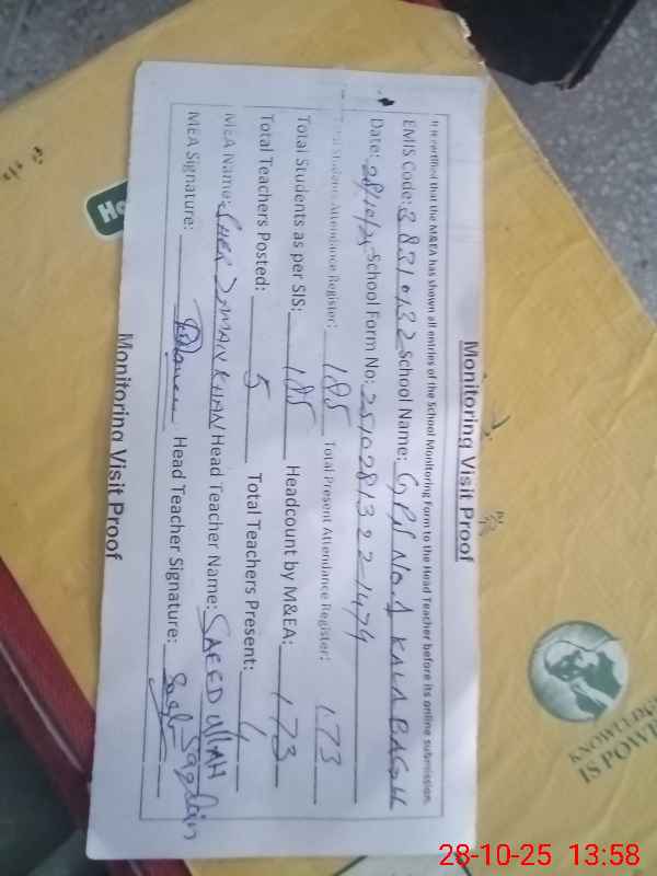 | EMIS Code: 38310132 | Name of School: GPS NO. 1 KALA BAGH | |||