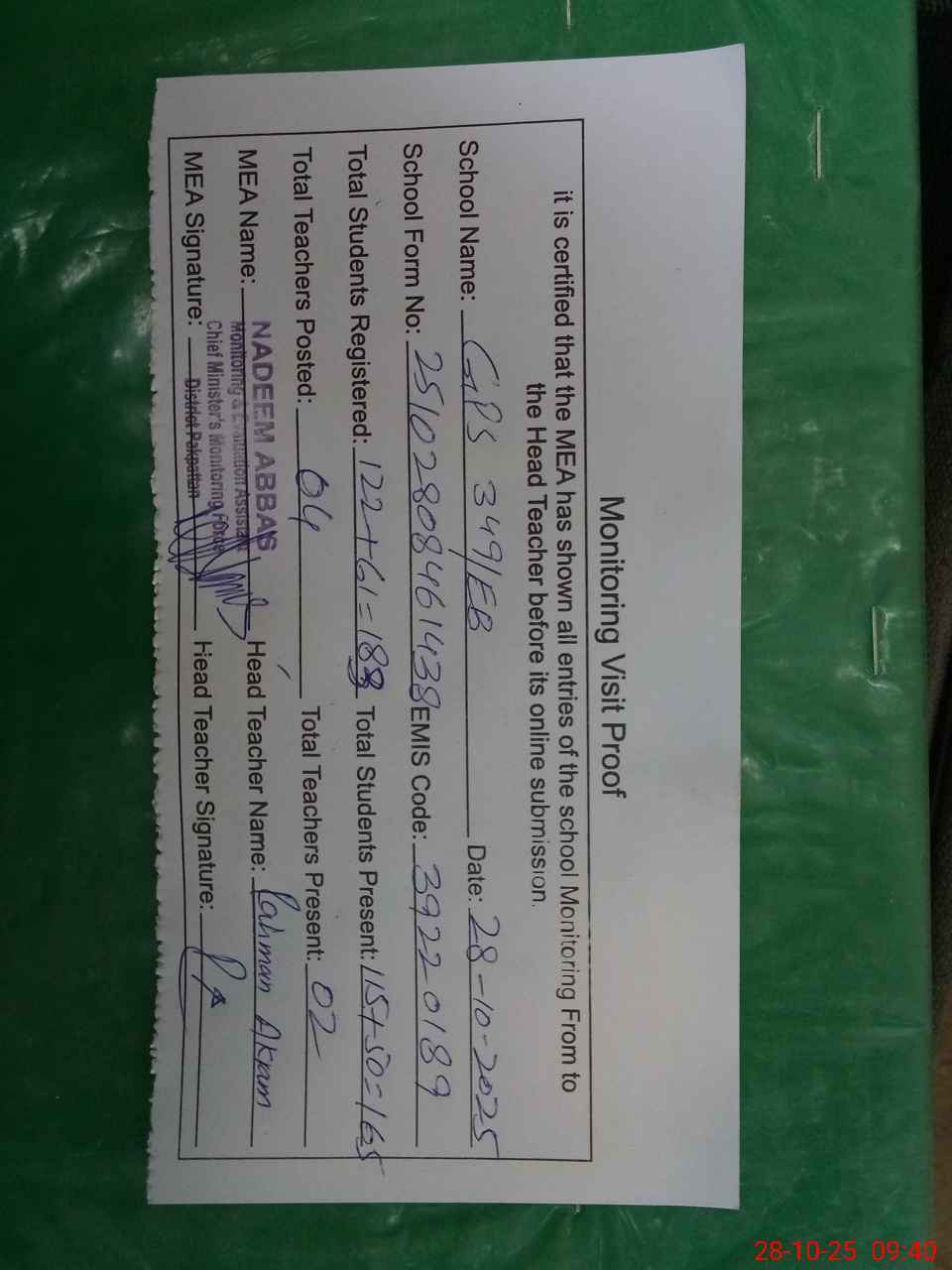| EMIS Code: 39220189 | Name of School: GPS 349 EB | |||
