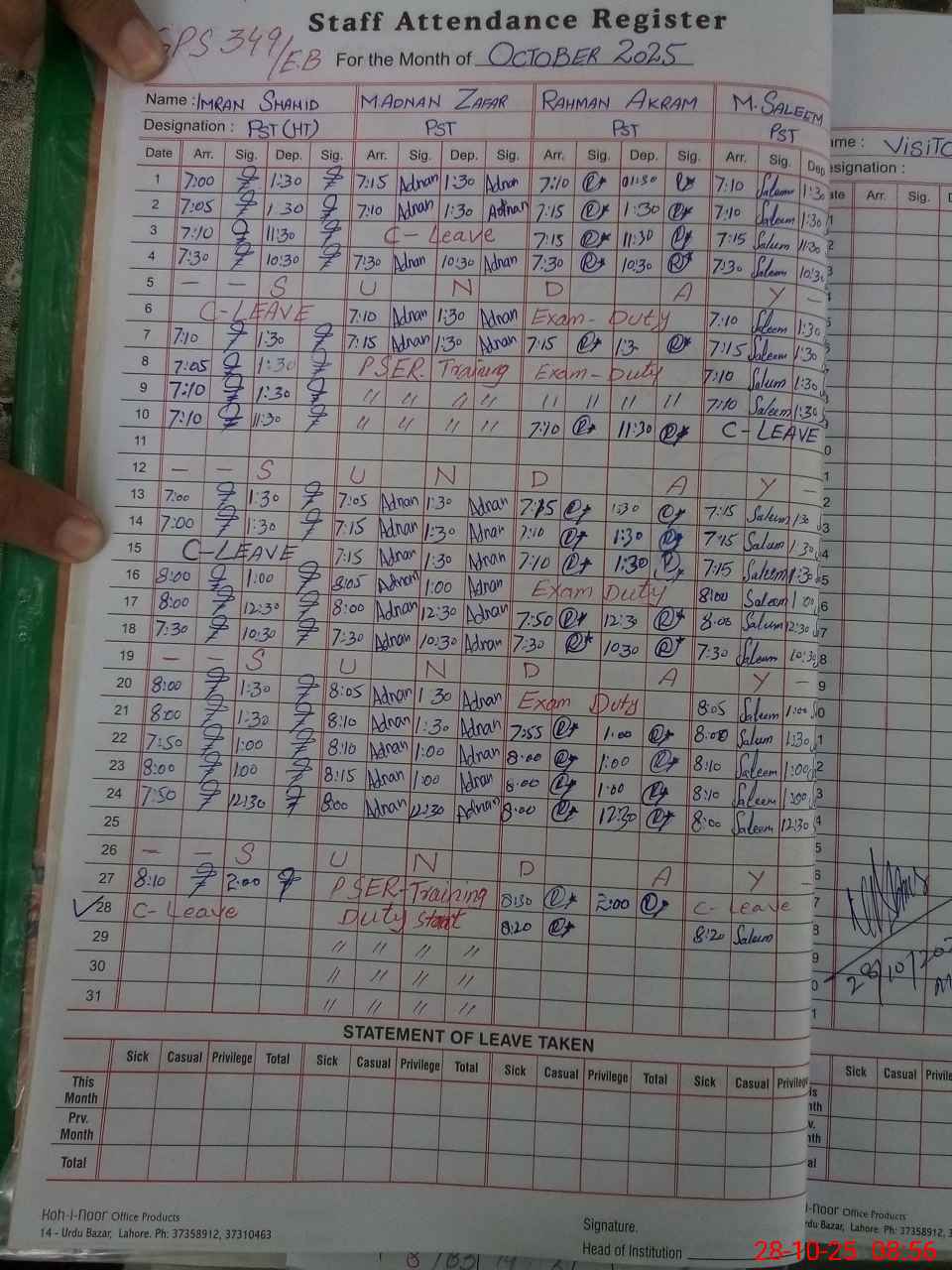 | Name: IM**** SH**** Designation: (School Headmaster's/Headmistress's) PST Phone/Cell Number: 03**** |