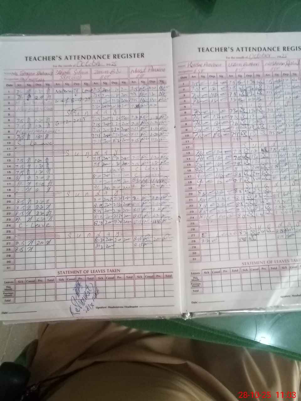 | Monitoring Date: 28-10-2025 | Start Time: 28-10-2025 10:55 AM | End Time: 28-10-2025 11:46 AM | Name of MEA: SH**** HU**** | |