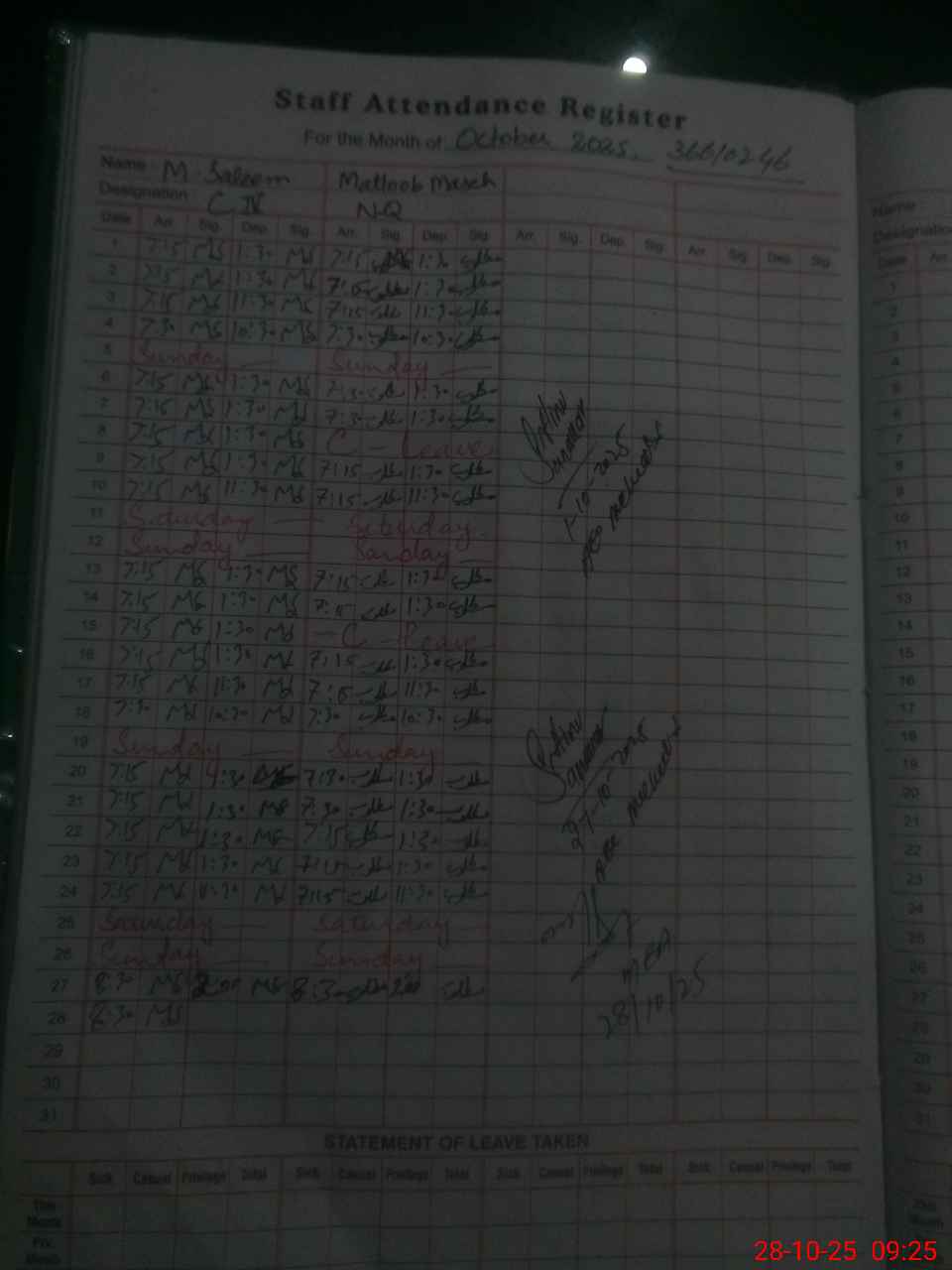 | 36**** | Ma**** Ma**** | N Q | 0 | 0 | 1 | 0 | 0 | 0 | 0 | 0 | 0 | Absent (Un-Authorized) | |